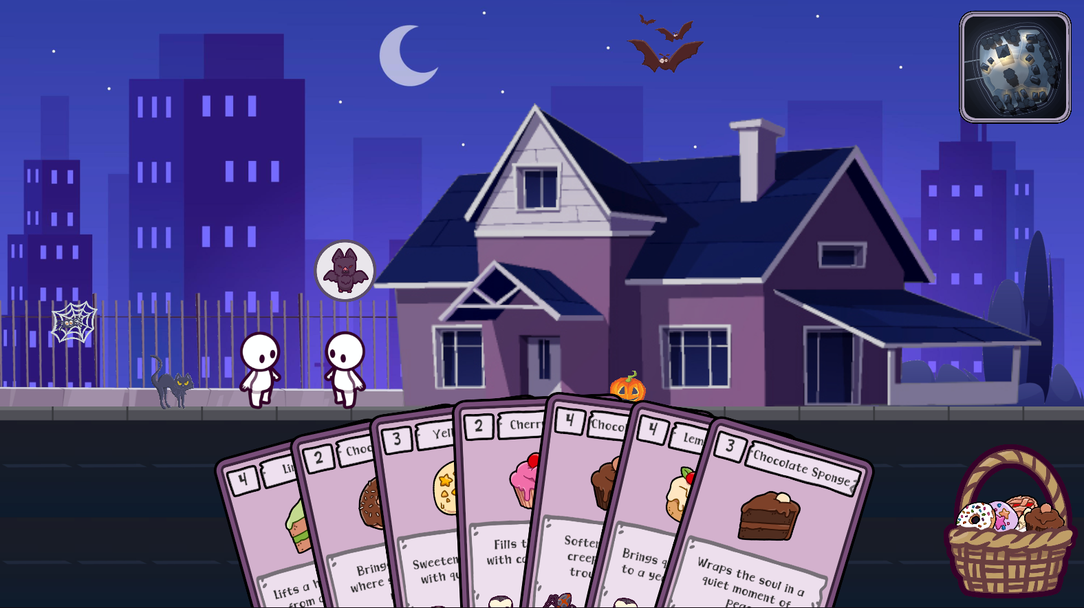 This game is in a barely playable state at the moment. You can go to the bakery to collect treats and then visit the residents and gift them the treats by playing the cards but there are visual bugs here so it will look like nothing is happening. Also there's no win or lose condition yet. Really more of a prototype at this stage.