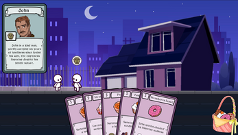 Sadly I did not get time to finish the game by the deadline. It is vaguely playable but there's a nasty bug that wipes out your progress when you go back to the village scene! There's no win or lose condition yet, you can play a card to yourself but it has no effect at the moment and the card cost is also not yet implemented!